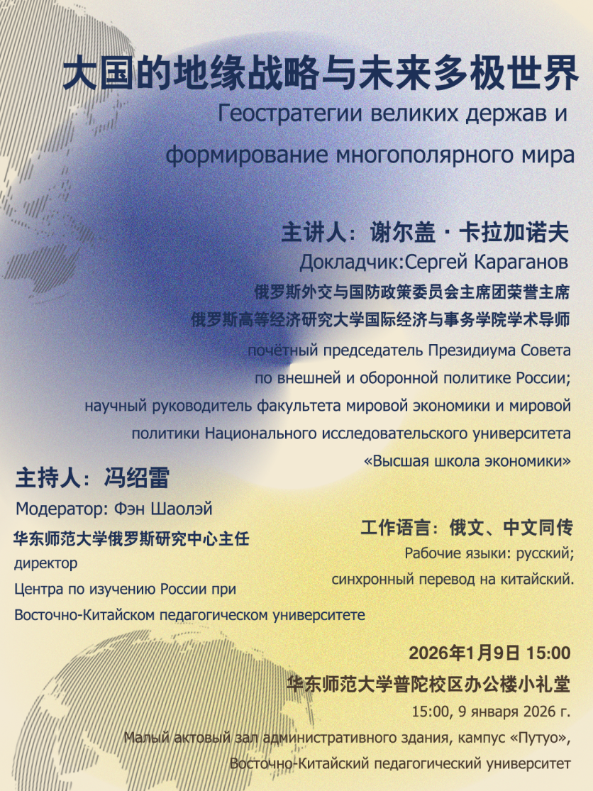 讲座通知: 谢尔盖.卡拉加诺夫--大国的地缘战略与未来多极世界